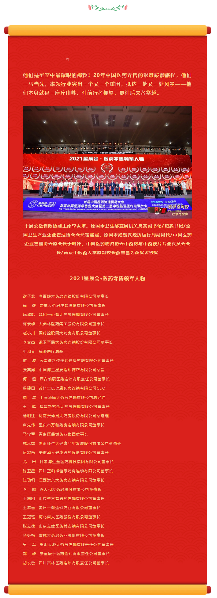 2021星辰會(huì )丨“醫藥零售領(lǐng)軍人物”、“醫藥工業(yè)領(lǐng)軍人物”榜單發(fā)布