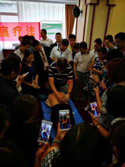控銷(xiāo)部同事在展示金紅整痛療法,學(xué)員零距離學(xué)習中。